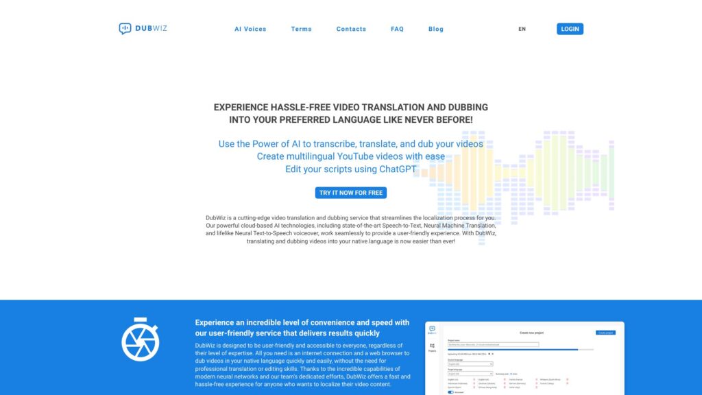 Just open DubWiz in your web browser and upload your video. Use the powerful AI features to transcribe the video, translate it into multiple languages, and create lifelike voiceovers. Edit the transcription and translation with the included ChatGPT tool. DubWiz puts all the tools you need at your fingertips, making the dubbing process quick and hassle-free