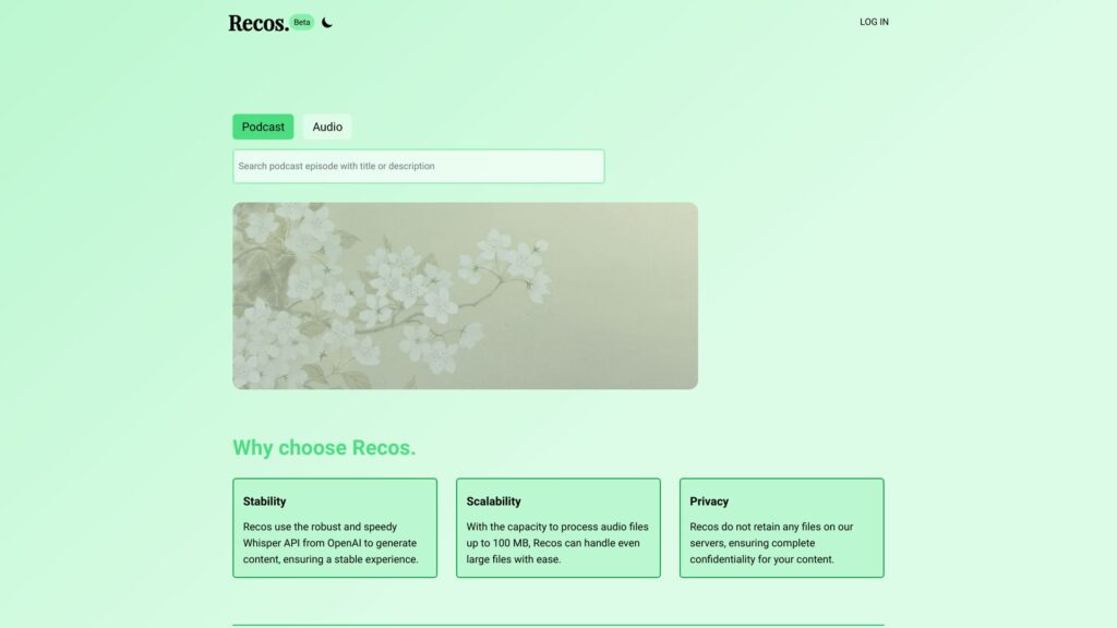 | 1 | Recos is useful for various scenarios such as transcribing podcasts, converting audio lectures into text, creating subtitles for videos, and more. It can be used by content creators, researchers, students, and anyone in need of accurate and efficient audio-to-text conversion. |